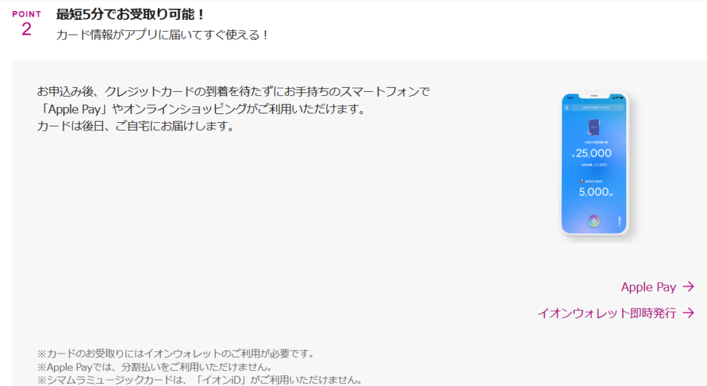 「最短5分でお受取り可能!」の下を見ると「カードのお受取りにはイオンウォレットが必要です」の一文がある。これはどういうことなのだろうか。